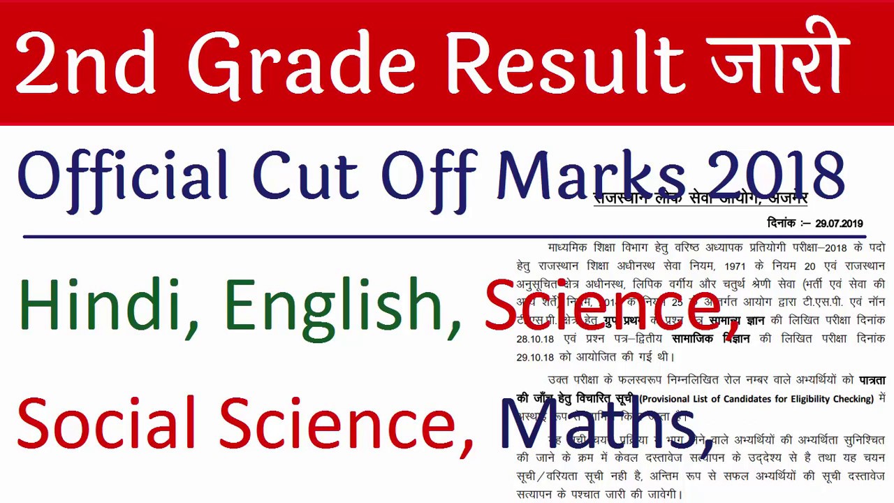 RPSC 2nd Grade Result 2019 Official Cut off Marks Download Maths SS Science Sanskrit English Hindi : Official Website :